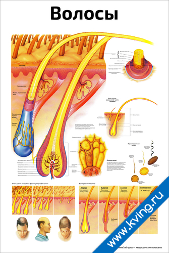 Волосы, строение волос — медицинский плакат