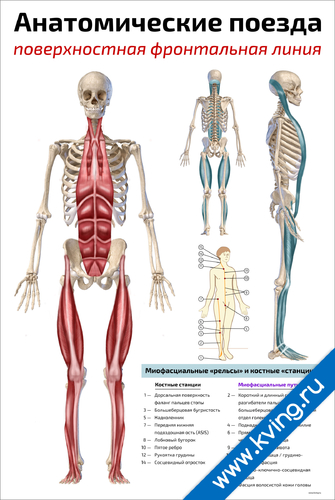 Анатомические поезда: поверхностная фронтальная линия — медицинский плакат