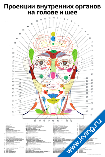 Проекции внутренних органов на голове и шее — плакат по прикладной кинезиологии