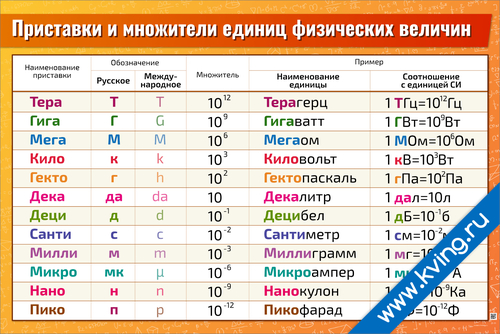 Приставки и множители единиц физических величин — плакат по физике