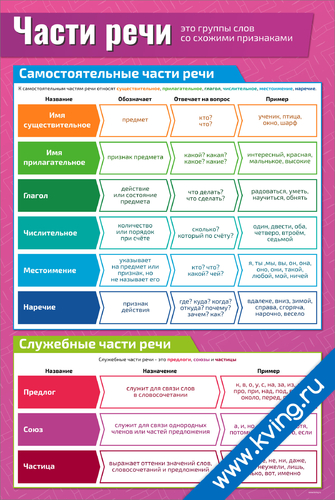 Части речи — развивающий плакат по и русскому языку