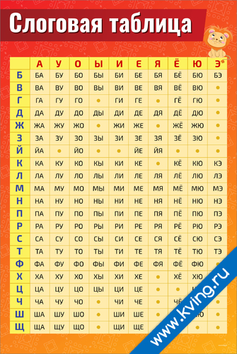 Слоговая таблица — развивающий плакат по родной речи и русскому языку