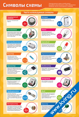 Символы схемы — плакат по схемотехнике