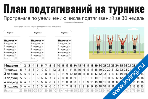 Программа по увеличению числа подтягиваний за 30 недель — плакат для спорта