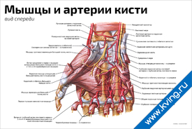 Плакат «Мышцы и артерии кисти: вид спереди»