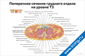 Плакат «Поперечное сечение грудного отдела на уровне Т3»