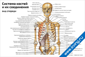 Плакат «Система костей и их соединения, вид спереди»