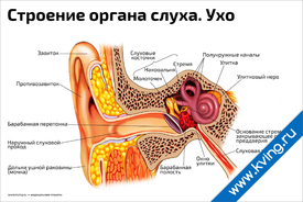 Плакат «Строение органа слуха, ухо»